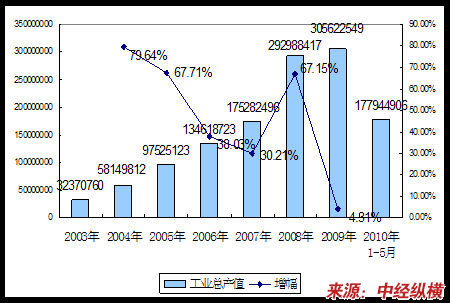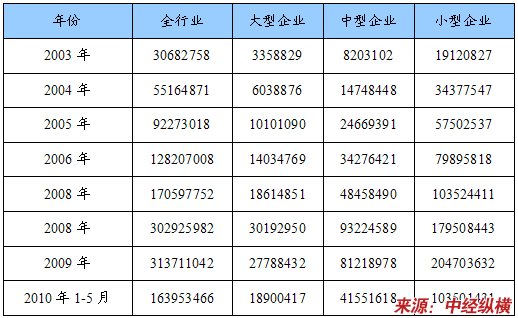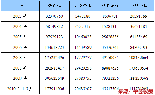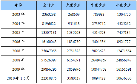 2003-2010年铁矿采选业不同规模企业工业总产值