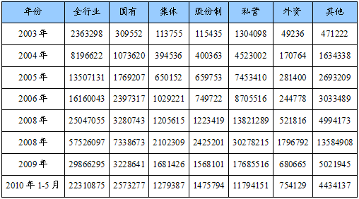 2003-2010年铁矿采选业不同所有制企业销售收入
