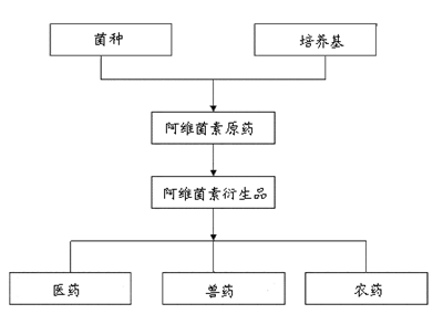 阿维菌素是一种利用土壤微生物阿佛曼链霉菌经大罐发酵后,提取的代谢产物,是一种全新的天然无公害生物农药。阿维菌素经过化学改造可以转化为伊维菌素、甲氨基阿维菌素、乙酰氨基阿维菌素等原药,它们可分别应用于农业杀虫(农药)、兽用驱虫、卫生用杀虫、人用驱虫等四大 行业 ,可以制成30多种新剂型,上百种产品,市场容量极大。