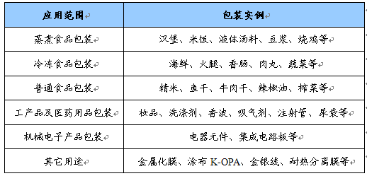 BOPA薄膜广泛地作为食品加工、医药卫生、化工产品等领域的包装材料,特别适合于冷冻包装、真空包装和蒸煮包装,对食品的保鲜、保香远远大于常规包装材料。