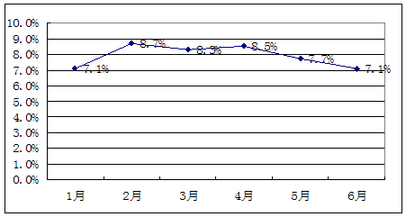 尽管上半年我国居民消费价格总水平(CPI)同比上涨7.9%,但从5月份和6月份的CPI数据看,不论同比还是环比均有所下降,这表明上半年居民消费价格涨幅持续走高的态势已得到初步遏制。