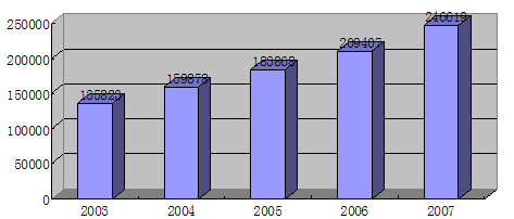 2003-2007年国内生产总值及增长速度(亿元)