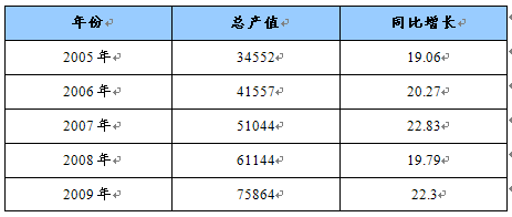 2005-2009年我国建筑业总产值增长情况 单位:亿元,%