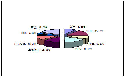 分地区看,目前国内彩涂能力主要集中在沿海发达地区,其中辽宁地区9家企业彩涂产能在120万吨,河北地区12家企业彩涂产能在190万吨,京津地区12家企业彩涂产能在105万吨,江苏地区21家企业彩涂产能在210万吨,上海浙江地区17家企业彩涂产能在167万吨,广东福建地区18家企业彩涂产能在167万吨,山东地区7家企业彩涂产能在57万吨。以上这些沿海地区合计彩涂产能占国内总产能的80%以上。