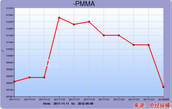 2012年国内亚克力产品价格波动范围较大,呈直线下降趋势。我国亚克力洁具企业生产成本大幅下降,利润率提高,洁具产品价格总体上略有下降。