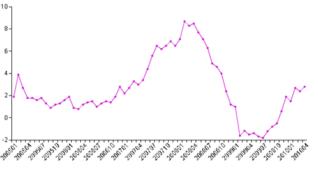 社会消费品零售额保持平稳增长 城乡居民收入水平持续增长。医改新方案、农村养老保险全覆盖等社会保障制度建设。储蓄消费型增长模式使中国消费有较强稳定性。汽车消费由大城市向中小城市梯度扩散 。家电下乡、家电和汽车摩托车以旧换新等扩大消费政策在2010年将出现递减效应。价格上涨会导致居民的实际购买力下降 。预计2010年实现社会消费品零售额同比增长18.5%,实际增长15%左右,低于上年水平。