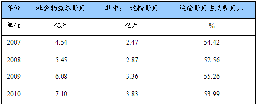 2007-2010年中国物流运输成本变化趋势