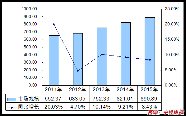 2011-2015年展示架、道具市场规模预测