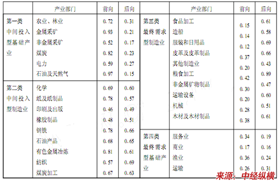 双向拉伸尼龙薄膜产业链是围绕满足BOPA薄膜企业生产过程所涉及到的一系列具有上下游关系的企业集合。钱纳里和渡边经彦对美国、日本、挪威和意大利4国的29个产业部门进行了数据 分析 。BOPA薄膜属于29个产业中的其他制造业,属于最终需求型制造业,其特点为前向关联效应小,后向关联效应较大。