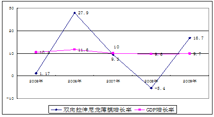 2005-2009年双向拉伸尼龙薄膜与宏观经济周期相关性