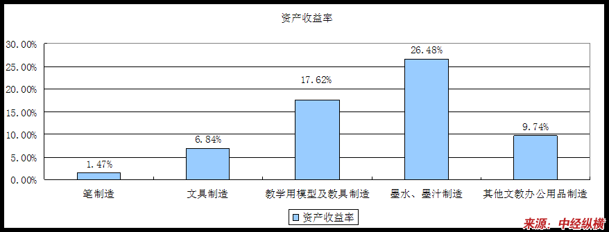 笔制造 行业 的收益率对比来说,该 行业 态势变化较大,在周边 行业 中的对比表现最差,虽然 行业 投资收益率走势变化较大,但是2011年又快速增长,今后有较好的上升空间。
