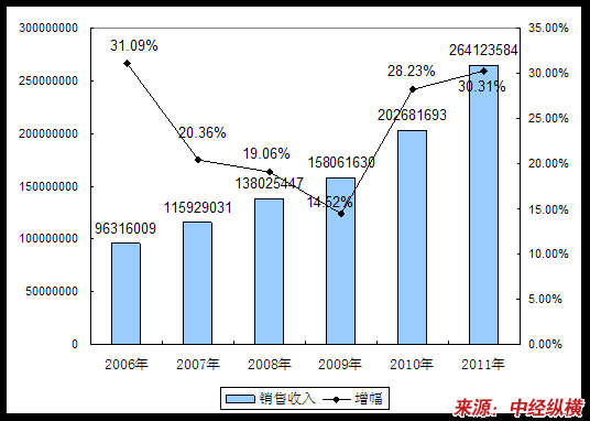 | 年份 | 2006 | 2007 | 2008 | 2009 | 2010 | 2011 |