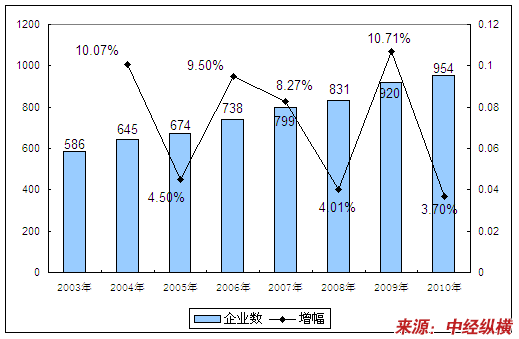 一、2003-2010年 行业 企业数量发展状况