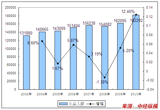 二、2003-2010年 行业 从业人员发展状况