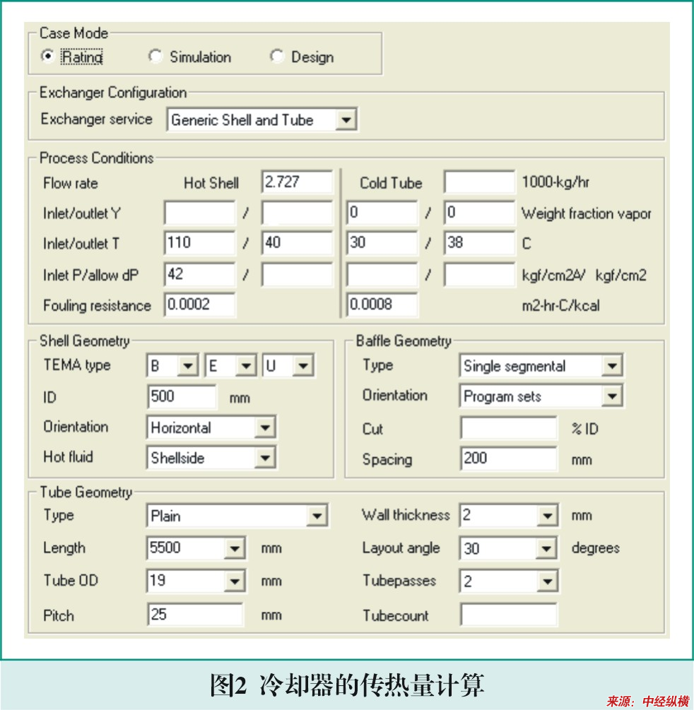 根据已知设计参数进行冷却器的工艺校核(Rating)计算