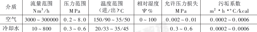 为了更深入的理解中间冷却器的多样性和复杂性,了解其适用范围、特征和重要参数的取值依据是非常必要的。下面是据此归纳的特性表。