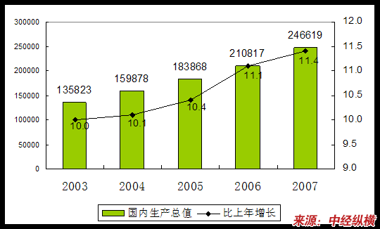 初步核算,全年国内生产总值246619亿元,比上年增长11.4%。分产业看,第一产业增加值28910亿元,增长3.7%;第二产业增加值121381亿元,增长13.4%;第三产业增加值96328亿元,增长11.4%。第一产业增加值占国内生产总值的比重为11.7%,与上年持平;第二产业增加值比重为49.2%,上升0.3个百分点;第三产业增加值比重为39.1%,下降0.3个百分点。分季度看,一季度增长11.1%,二季度增长11.9%,三季度增长11.5%,四季度增长11.2%。