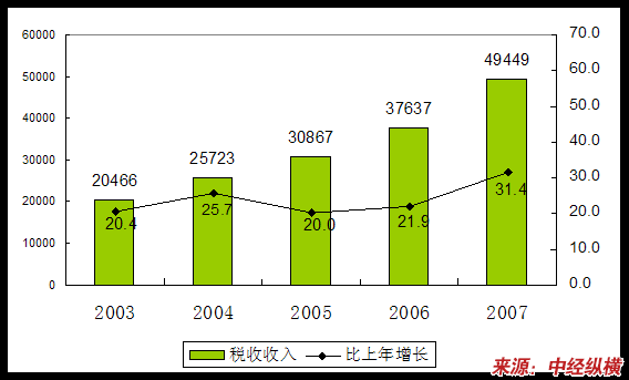 全年税收收入49449亿元(不包括关税、耕地占用税和契税),比上年增加11813亿元,增长31.4%。