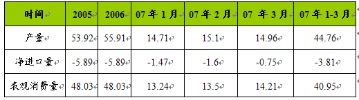 第二节 汽油产品产量 分析 及预测2005-2007年