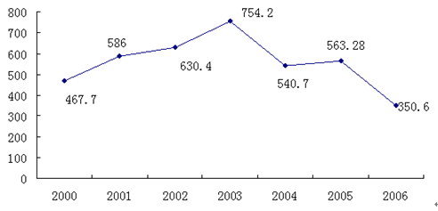第六节 汽油进口量值 分析 及预测2005-2007年