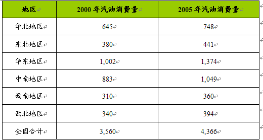 第三节 汽油市场需求 分析 及预测2005-2007年
