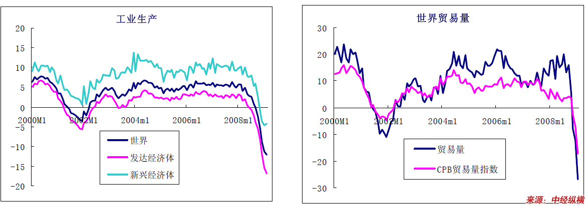 2008年世界范围内的贸易量已经连续2年下滑,而2009年下滑幅度将更是创纪录的。IMF预估2009年世界贸易量将下降11%,2010年仅能微幅增长0.6%。