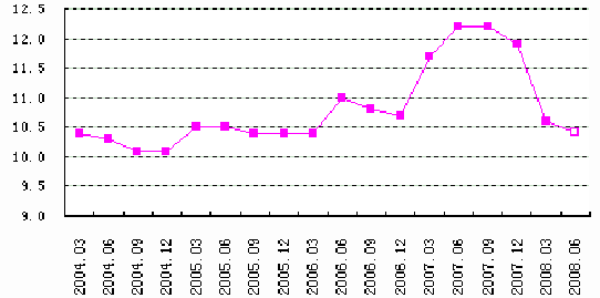 2004-2008年6月我国国内生产总值增长趋势图