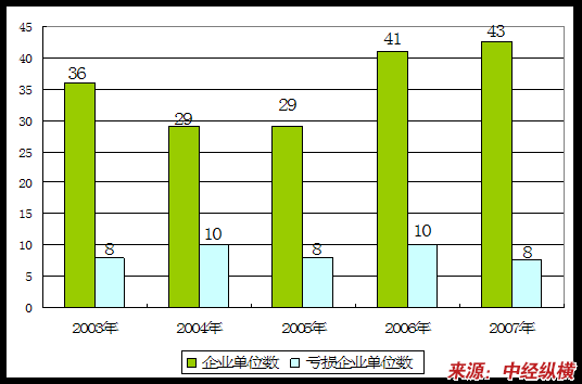 一、2003-2007年中国非金属船舶制造 行业 企业及亏损企业数量