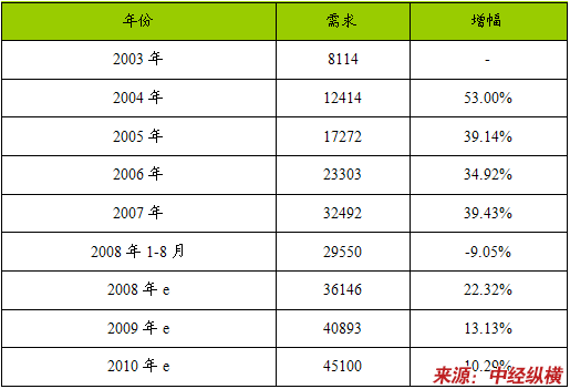 2003-2010年我国低温帽口套市场需求 分析 及预测