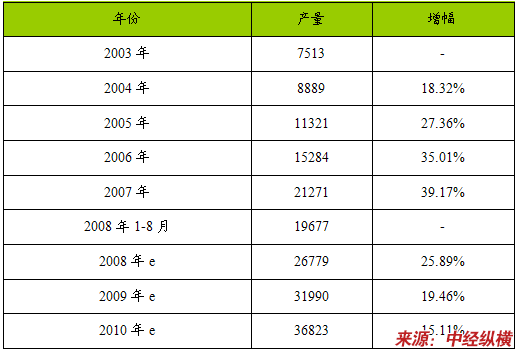 2003-2010年我国保温冒口套产品产量统计及预测表