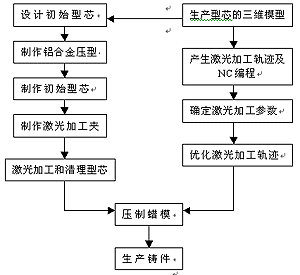 许多精铸件需要制作陶瓷型芯特别是复杂、精细的陶瓷型芯,如涡轮发动机空心叶片等,计算机可以根据CAD数据,控制激光束在陶瓷型芯上精确地加工出各种不同结构的型芯,特别是对于用传统制芯工艺很难制出的型芯,更显出其优点。