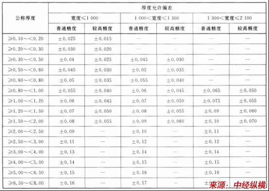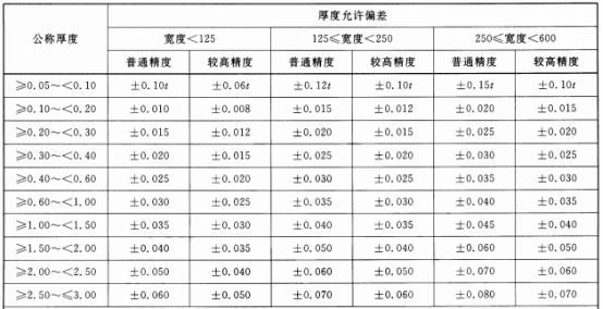 宽钢带及卷切钢带、纵剪钢带及卷切钢带I的厚度允许偏差