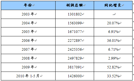 不锈钢厨餐具在近几年保持了快速的增长,尽管在2007、2008年增速有所回落,但2009年经济回暖,不锈钢厨餐具利润迅速回升,2010年前5月仍保持了30%以上的增速,预计在经济向好的形势下,全年将保持30%以上增速。