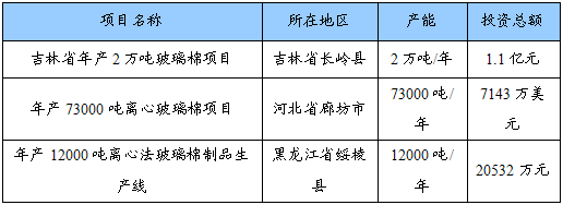 2009-2010年我国玻璃棉主要拟在建项目分布