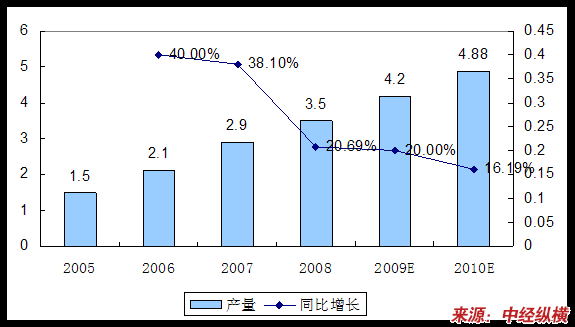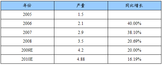 2005—2010年玻璃纸产品产量 分析 及预测表