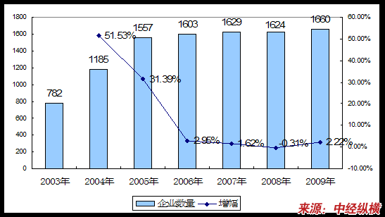 一、2003-2009年 行业 企业数量发展状况