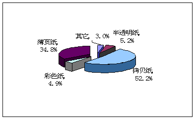 从我国薄型纸生产总量来看,目前国内 行业 总产量还比较小,总产量仅为12万吨。 行业 总的生产能力还比较弱,目前国内最大的生产企业饶山纸业年产能仅为5万吨左右。目前国内生产的薄型纸品种主要为拷贝纸和薄页纸,其中拷贝纸产量超过50%;薄页纸产量为34.8%。
