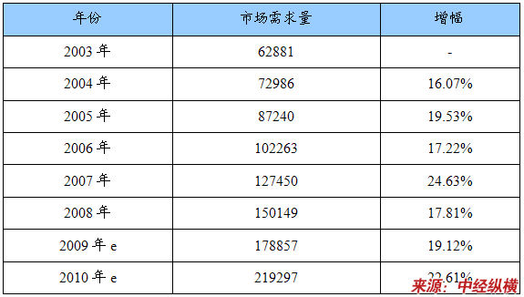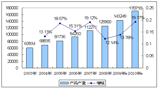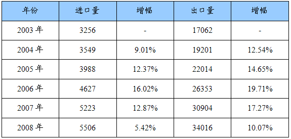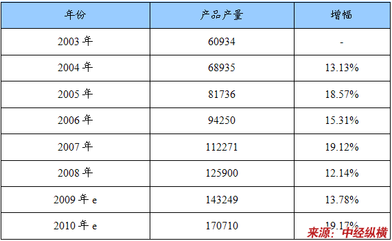 从目前国内 行业 企业生产能力看,国内企业生产规模普遍较小, 行业 产量2008年仅为12万吨,远远满足不了国内市场需求。而国内近些年快速增长的市场需求,使得企业将更多的精力放到对国内市场的开发上,这对于产品出口都有一定的影响。