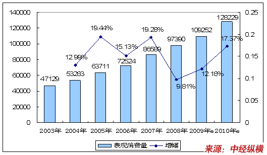 国内薄型纸市场近些年增长很快,2007年产品市场需求增长率一度达到24.63%,为近几年最高增速,目前国内市场需求量已经超过150000吨。