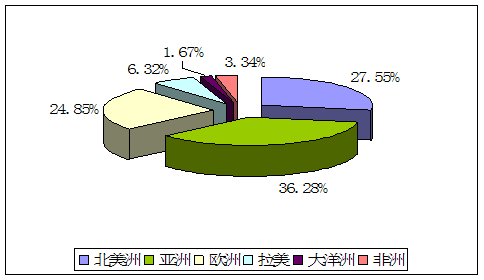 2006年我国家电 行业 出口地区分布