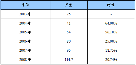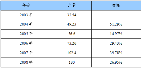 2003-2008年我国铬铁产量统计