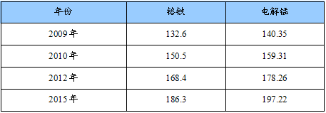 2009-2013年我国铬铁及电解锰产量预测