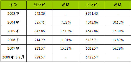 国内炒锅产品近些年在生产技术和产量上有很大的提高,随着产品在国外市场销售网络的建立和完善。我国炒锅以较高的性价比快速融入到国际市场当中。同时全球贸易往来的紧密也使得国外大量产品涌入到国内市场,我国居民消费水平的提高和对厨房用具的喜好程度使得国内市场上的进口品牌种类和数量逐渐增多。从进出口的数据来看,目前我国炒锅产品的出口额远大于产品的进口额,且出口增长发展良好。