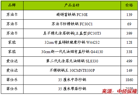 农村市场长期以来零售业态发展不够完善,没有商场和卖场,主要依靠地摊、杂货铺、小卖铺和五金店等渠道销售,产品以中低端为主,主要满足日常烹饪的基本要求,小品牌、无品牌产品众多,价格水平比较低,如铁炒锅最低售价一二十元。这使得国内炒锅价格的两极分化情况严重。