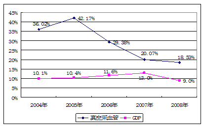 从图中可以看出,真空采血管 行业 产量增幅与与国家宏观经济环境相关程度较大,随着GDP的增加,产量增加, 行业 产品总产量增长率高于国家GDP增长率, 行业 前景看好。
