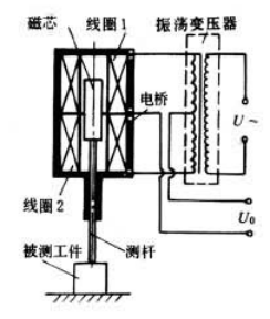 电感传感器的工艺流程是当磁芯位于线圈1、2的中间位置时,两线圈产生的电感量相等。此时,由线圈1、2和振荡变压器次级线圈组成的电桥保持平衡。当带磁芯的测杆上下移动时,两线圈产生的电感量不等,电桥不平衡,有电压U0输出。U0的大小与测杆移动距离成比例。