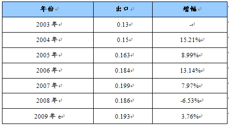 2003-2009年我国直埋预制保温管出口量表 单位:万千米