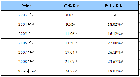 2003-2009年我国直埋预制保温管市场需求量表 单位:万千米