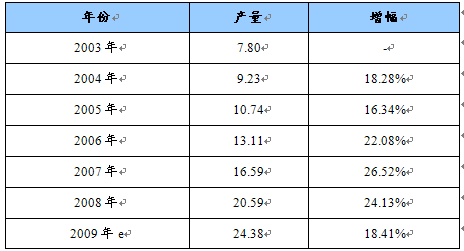 2003-2009年我国直埋预制保温管产品产量表 单位:万千米