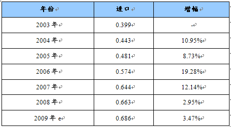 2003-2009年我国直埋预制保温管进口量表 单位:万千米